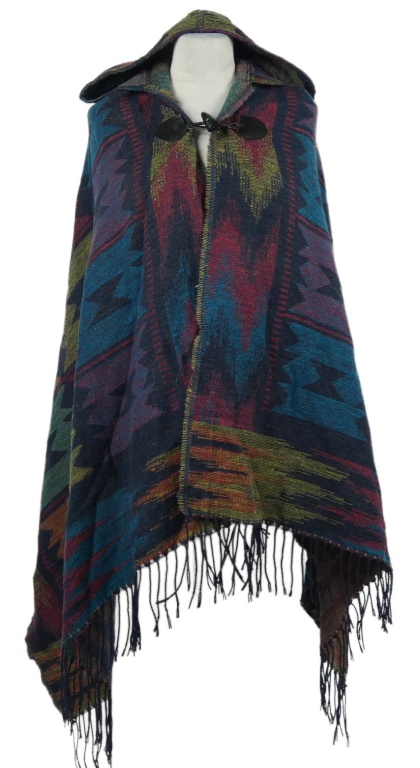 Dámske tmavomodré kockované pletené pončo s kapucňou