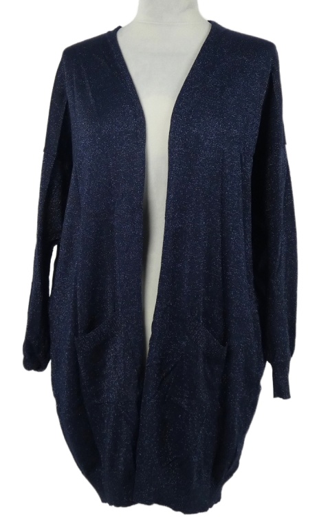 Dámsky tmavomodrý trblietavý svetrový cardigán