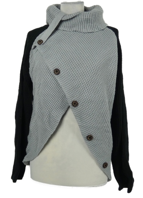 Dámsky sivo-čierny prepínaci sveter s rolákom