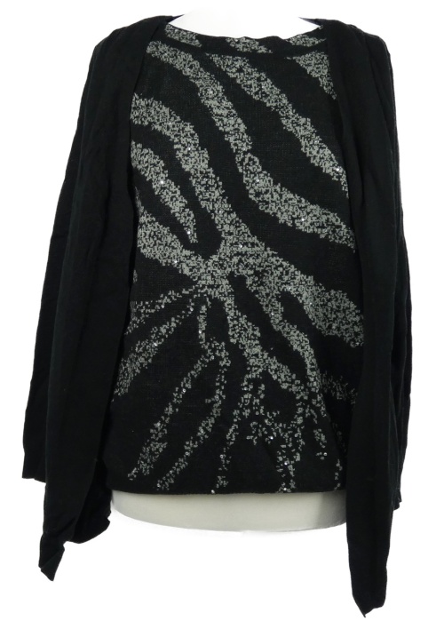 • Dámsky čierno-strieborný vzorovaný vlnený sveter s kamienkami Damart
