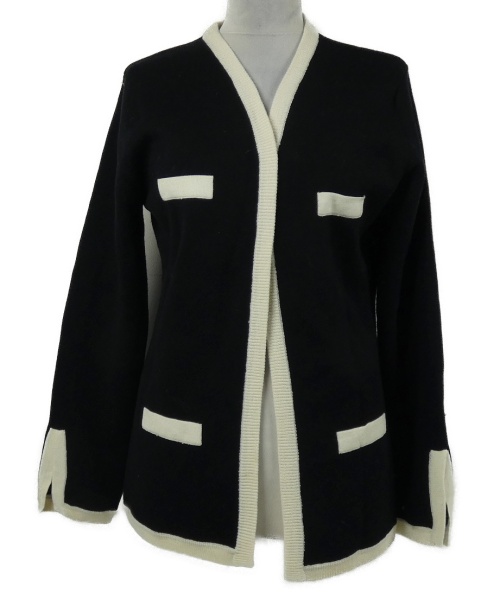 Dámsky čierno-béžový svetrový vlnený cardigán