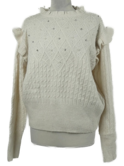 • Dámsky smotanový vzorovaný sveter s kamienkami a volánikmi Primark