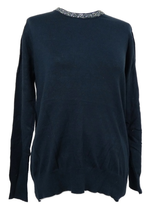 Dámsky tmavomodrý sveter so štrasovým golierikom Primark