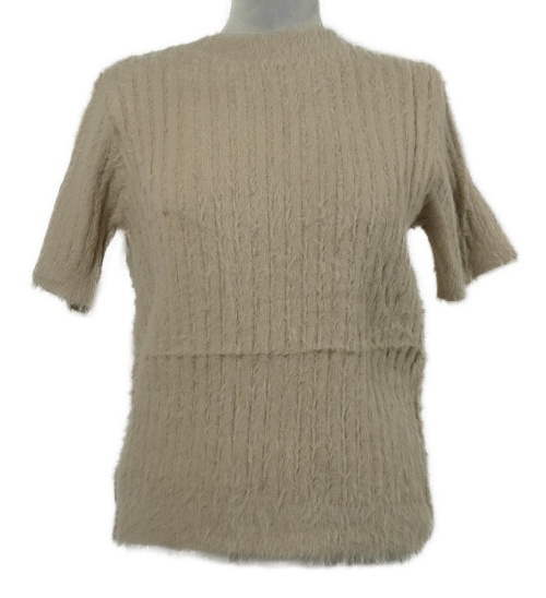 Dámsky béžový rebrovaný chlpatý sveter s krátkymi rukávy New Look