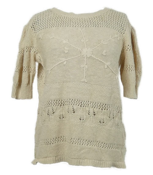 Dámsky béžový ažurový sveter s krátkymi rukávy Damart