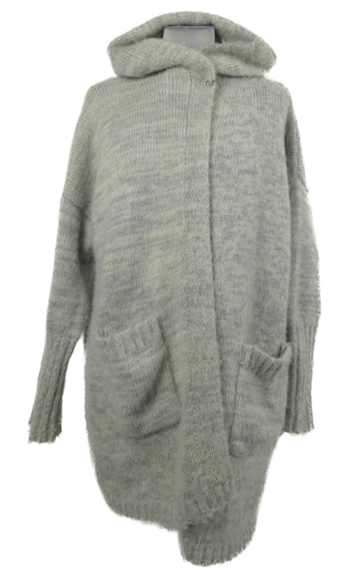 Dámsky sivý melírovaný svetrový cardigán s kapucňou