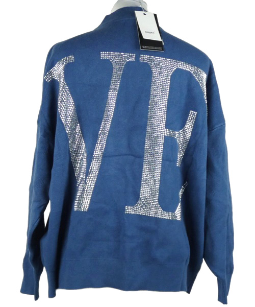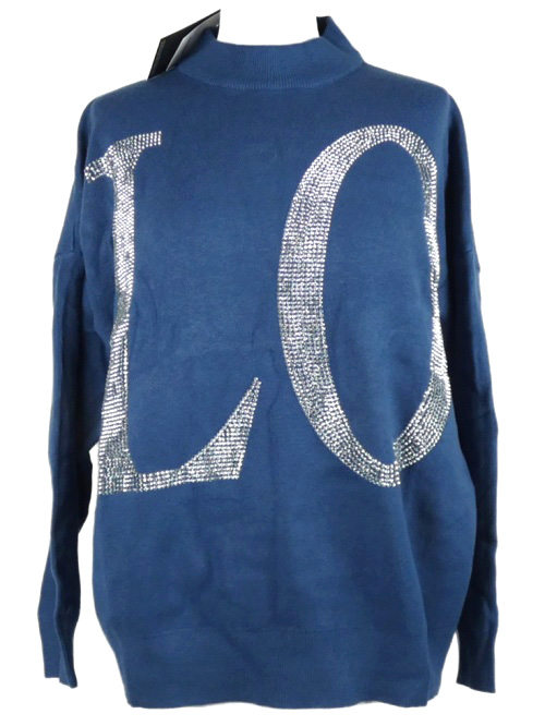 Nové - Dámsky modrý sveter s nápisem z kamínků Enzoria