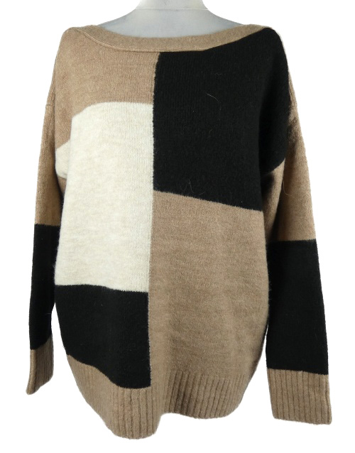 Dámsky béžovo-čierno-biely kockovaný sveter