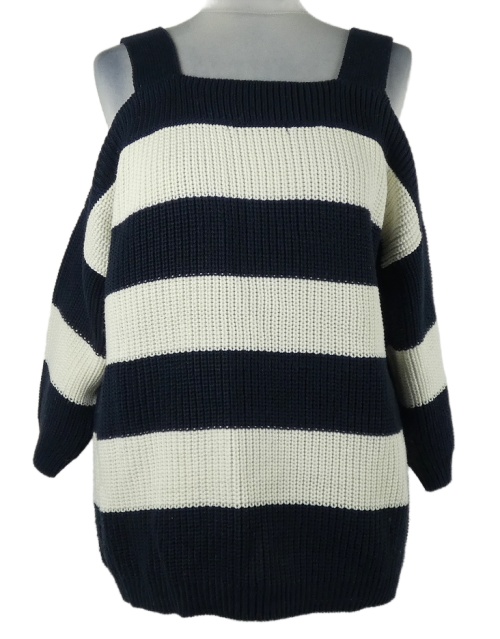 • Dámsky tmavomodro-biely pruhovaný sveter s volnými rameny George