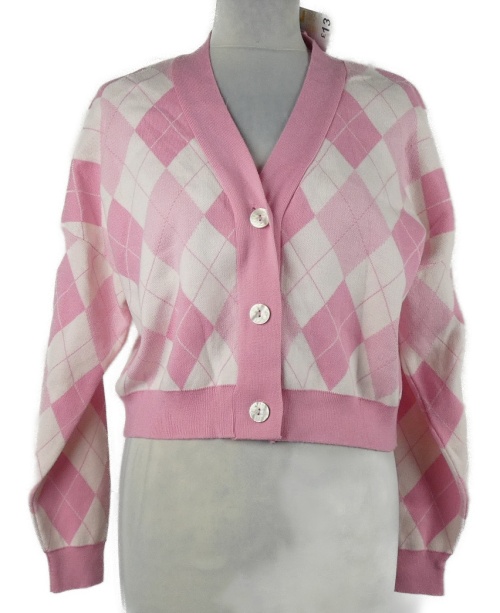 Nové - Dámsky ružovo-biely kockovaný crop prepínaci sveter Primark