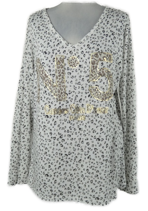 Dámske bielo-čierne vzorované úpletové tričko s nápisom