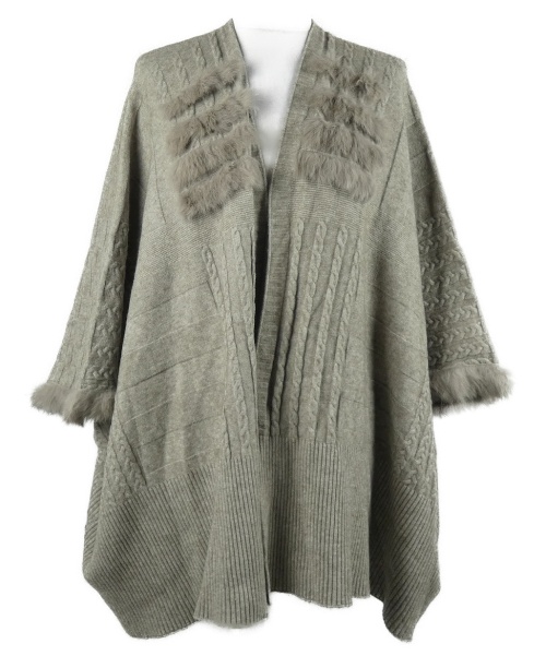Dámsky sivý vzorovaný svetrový cardigán s kožúškom