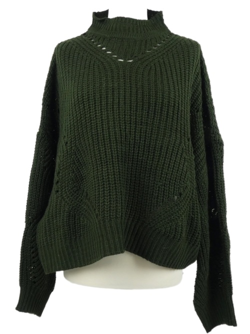 Dámsky khaki ažurový crop oversized sveter so stojačikom
