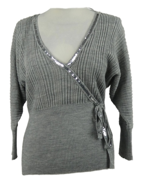 Nové - Dámsky sivý ažurový sveter s flitrami George