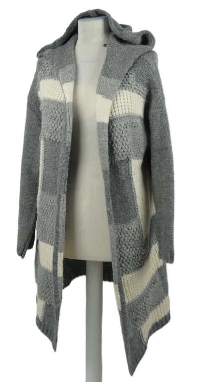 Dámsky sivo-biely pruhovaný svetrový cardigán s kapucňou George