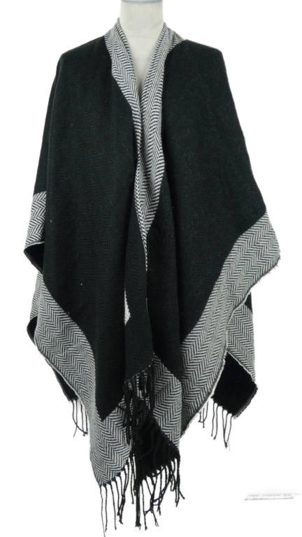 • Dámský černo-bílý vzorovaný svetrový pléd s strapcemi Papaya