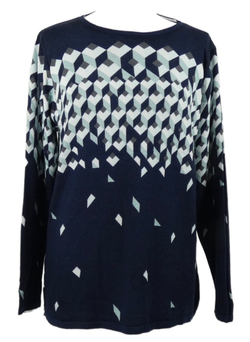 Dámsky tmavomodro-biely vzorovaný ľahký sveter