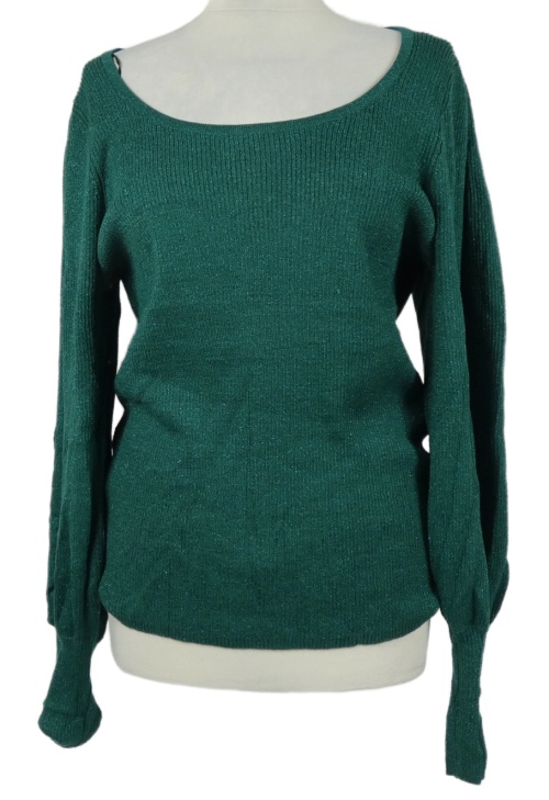 Dámsky zelený trblietavý sveter s nabíranými rukávy F&F