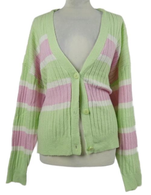 • Dámsky světlezeleno-ružovo-biely pruhovaný prepínaci sveter Hailys