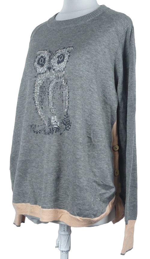 Dámsky sivo-ružový sveter so sovou Mantaray