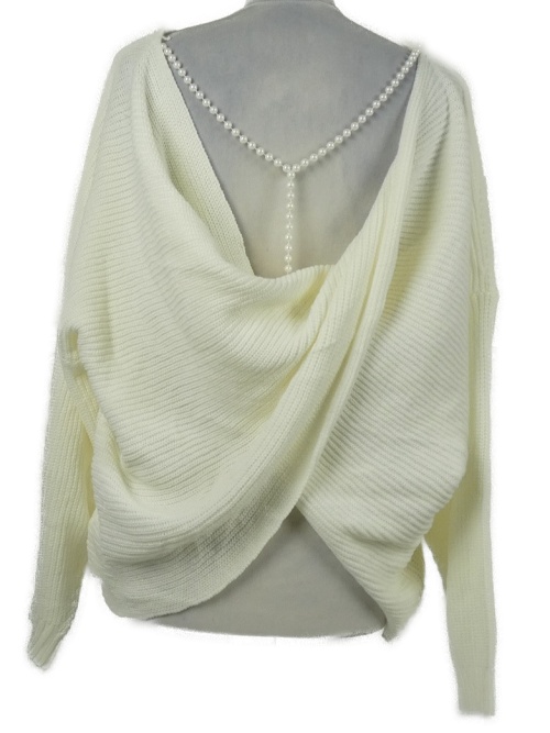 Dámsky smotanový voľné ý sveter s korálkami Shein
