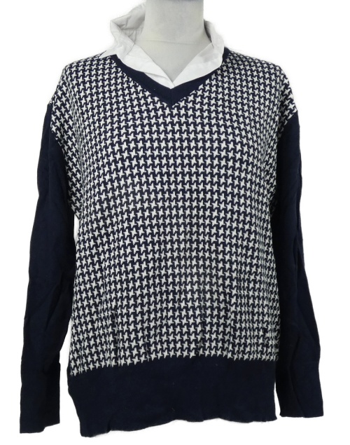 Dámsky tmavomodro-biely vzorovaný sveter s golierikom Gerard