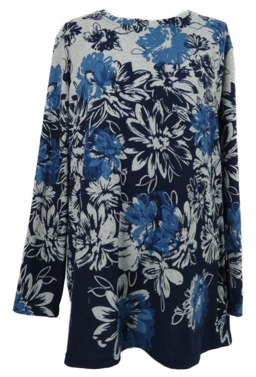 Dámska sivo-tmavomodrá kvetovaná svetrová tunika Isle
