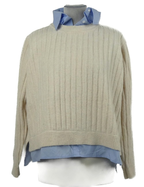 • Dámsky smotanový rebrovaný sveter s modrou halenkovou vsadkou Primark