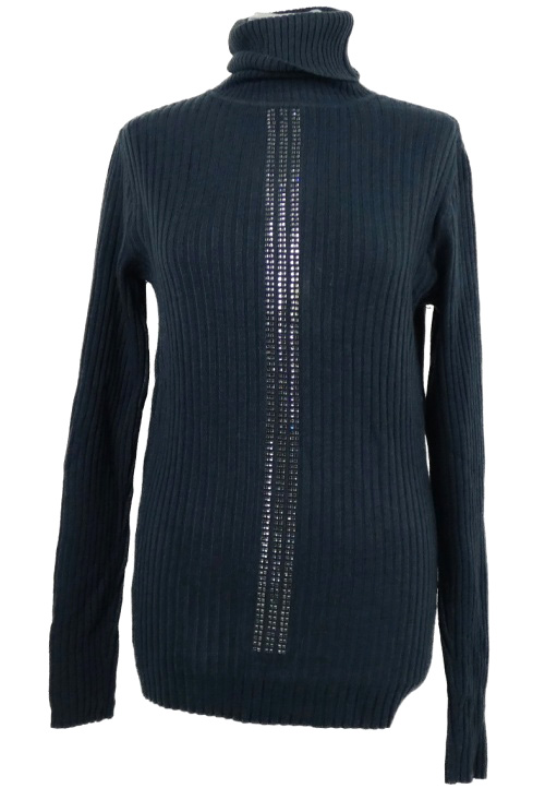 Dámsky tmavomodrý rebrovaný svetrový rolák s kamienkami