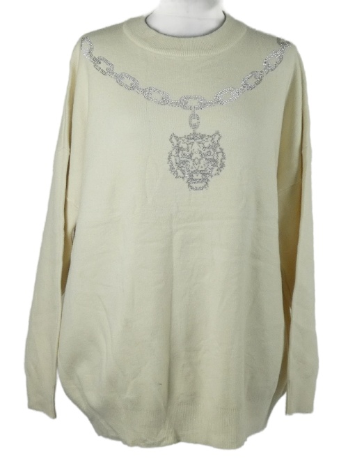 Dámsky smotanový sveter s obrázkem řetězu z kamínků Moocci
