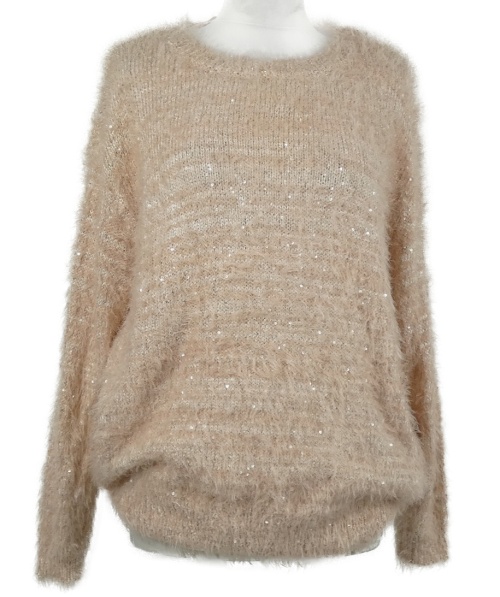 Dámsky svetloružový chlpatý sveter s flitrami Atmosphere