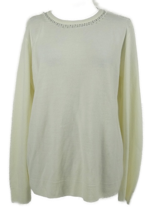 Dámsky smotanový sveter s kamienkami a perlami Paramour