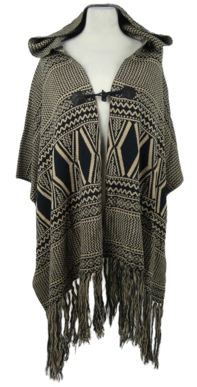 Dámský černo-béžový vzorovaný pléd s kapucňou New Look