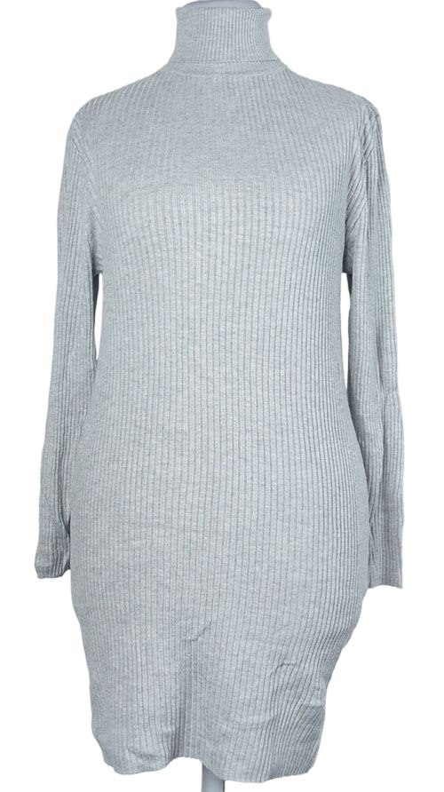 Dámsky sivý rebrovaný dlhý sveter s rolákom Atmosphere