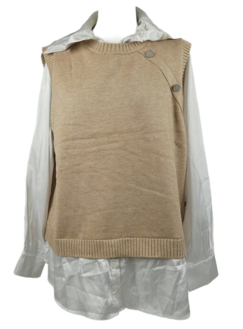 Dámska béžová svetrová vesta s bílou halenkovou saténovou vsadkou Next