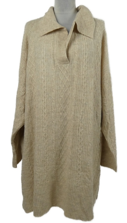 • Dámska béžová vzorovaná svetrová tunika s golierikom Peacocks
