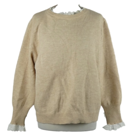 Dámsky béžový sveter s madeirovým volánikom