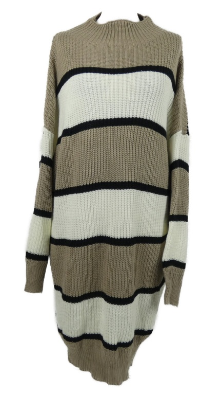 Dámska béžovo-čierno-biela pruhovaná svetrová tunika Shein