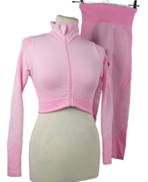2set - Dámske svetloružové vzorované športové crop prepínaci triko + legíny