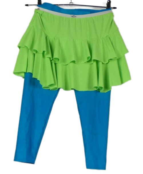 Dámske tyrkysové športové capri legíny s našitou limetkovou sukní Ervy