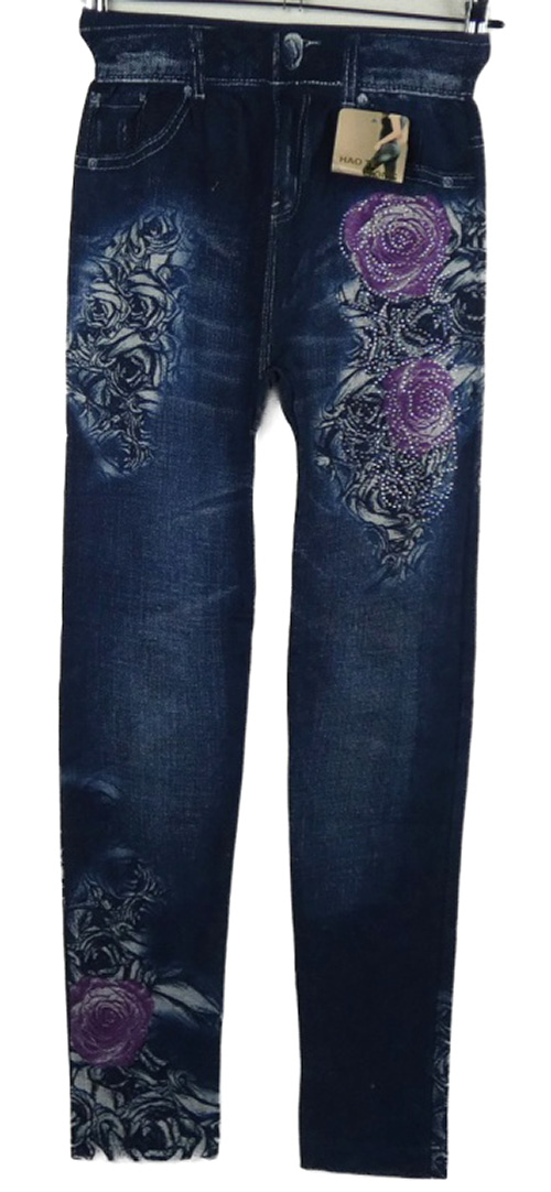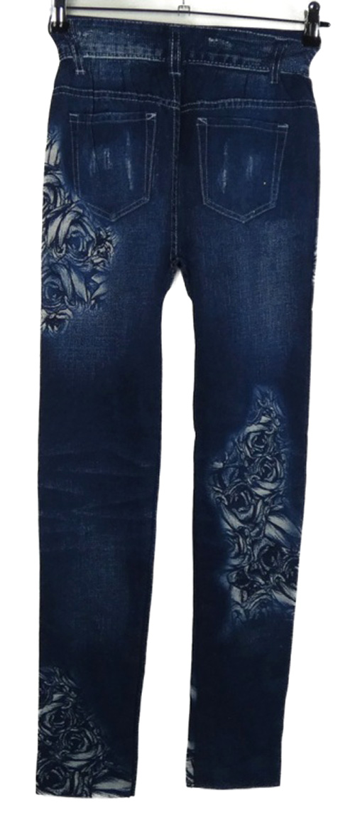Nové - Dámské tmavomodré legíny riflového vzhledu s potlačou