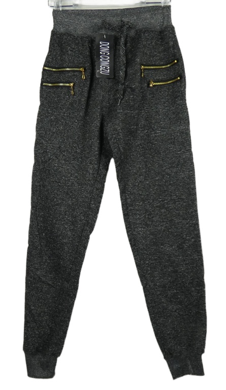 Nové - Dámske sivo-čierne melírované cuff tepláky so zipy