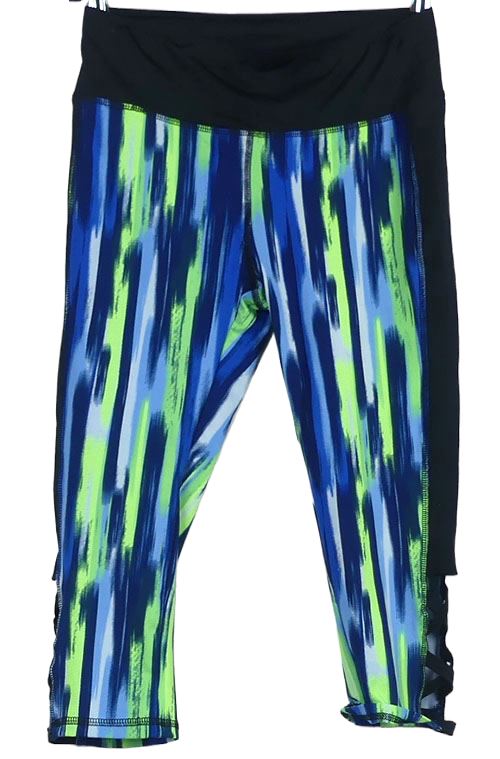 Dámske modro-zeleno-čierne vzrované športové capri legíny so šnurovaním