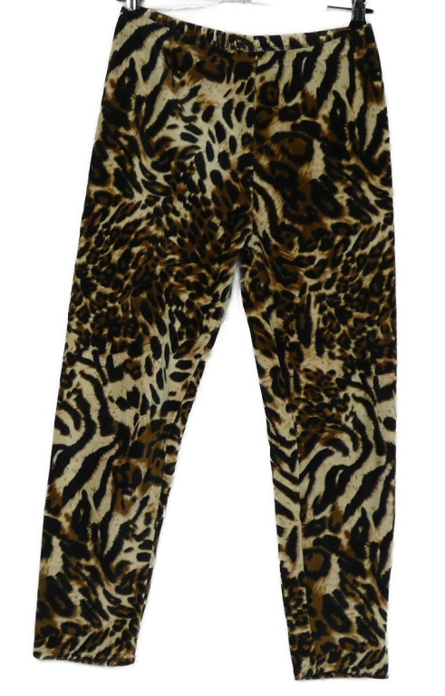 Dámske béžovo-čierne vzorované plyšové teplákové legíny