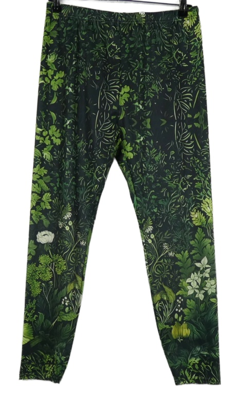 Dámske čierno-zelené kvetované legíny