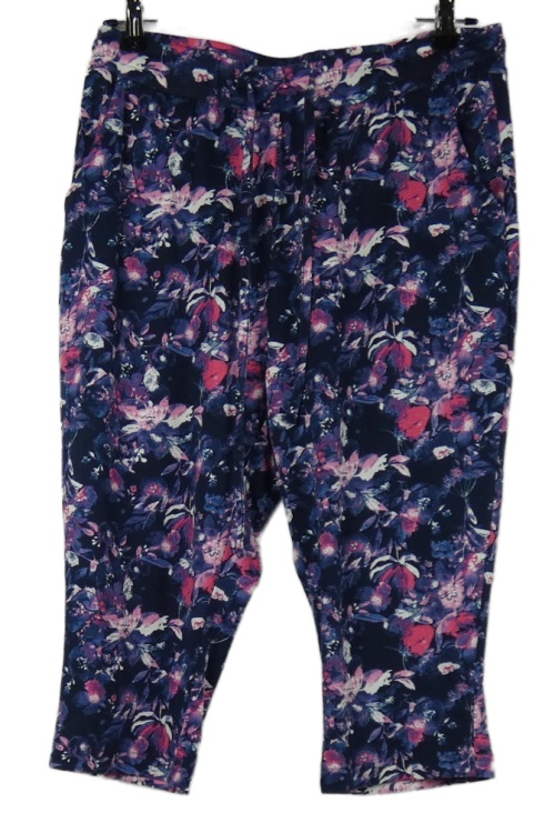 Dámske tmavomodro-ružové kvetované capri tepláky