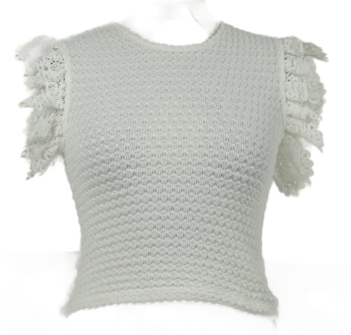 Dámska biela pletená crop blúzka s volánikmi
