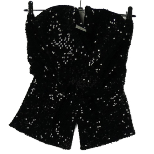 Nové - Dámsky čierny flitrový korzetový top River Island