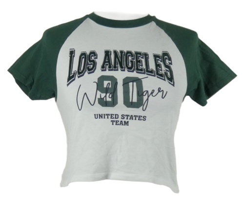 Dámske bílo-khaki crop tričko s nápismi a číslom Kiabi