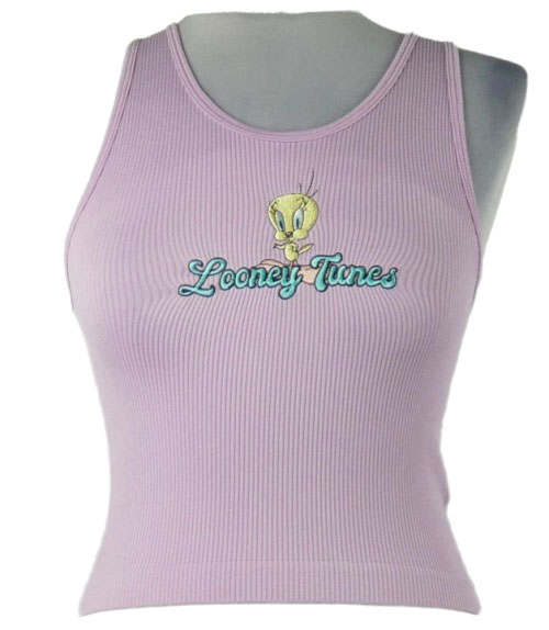 Nové - Dámsky svetloružový rebrovaný elastický crop top so Tweetym Primark